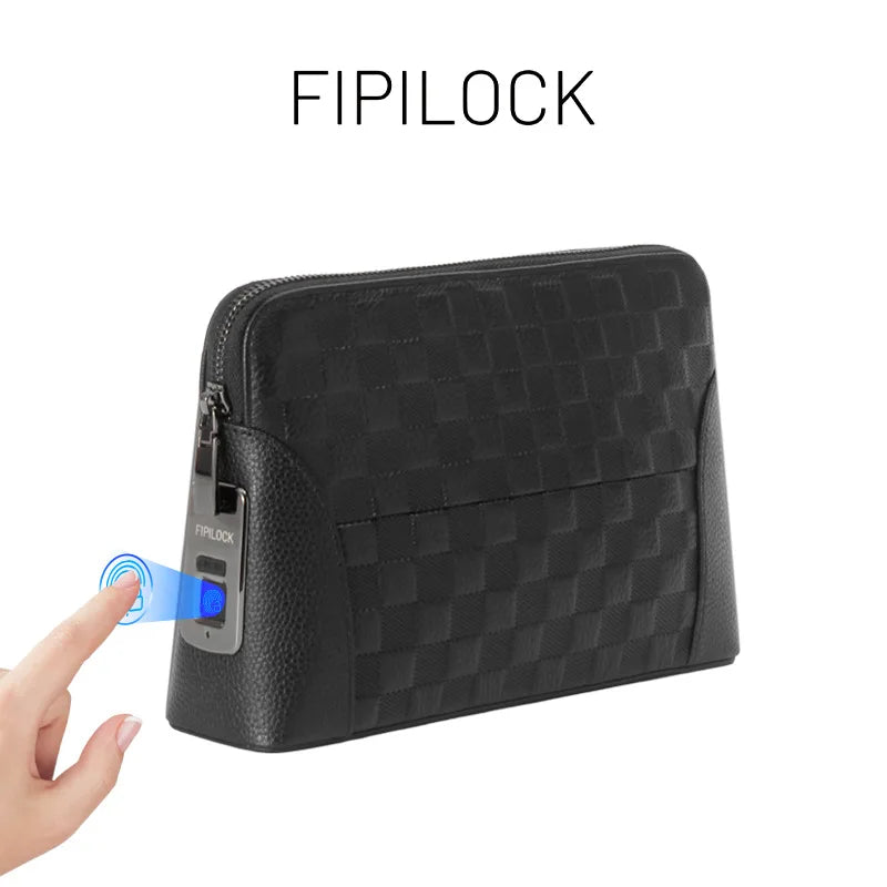 حقيبة جلد فاخرة بقفل بصمة الإصبع